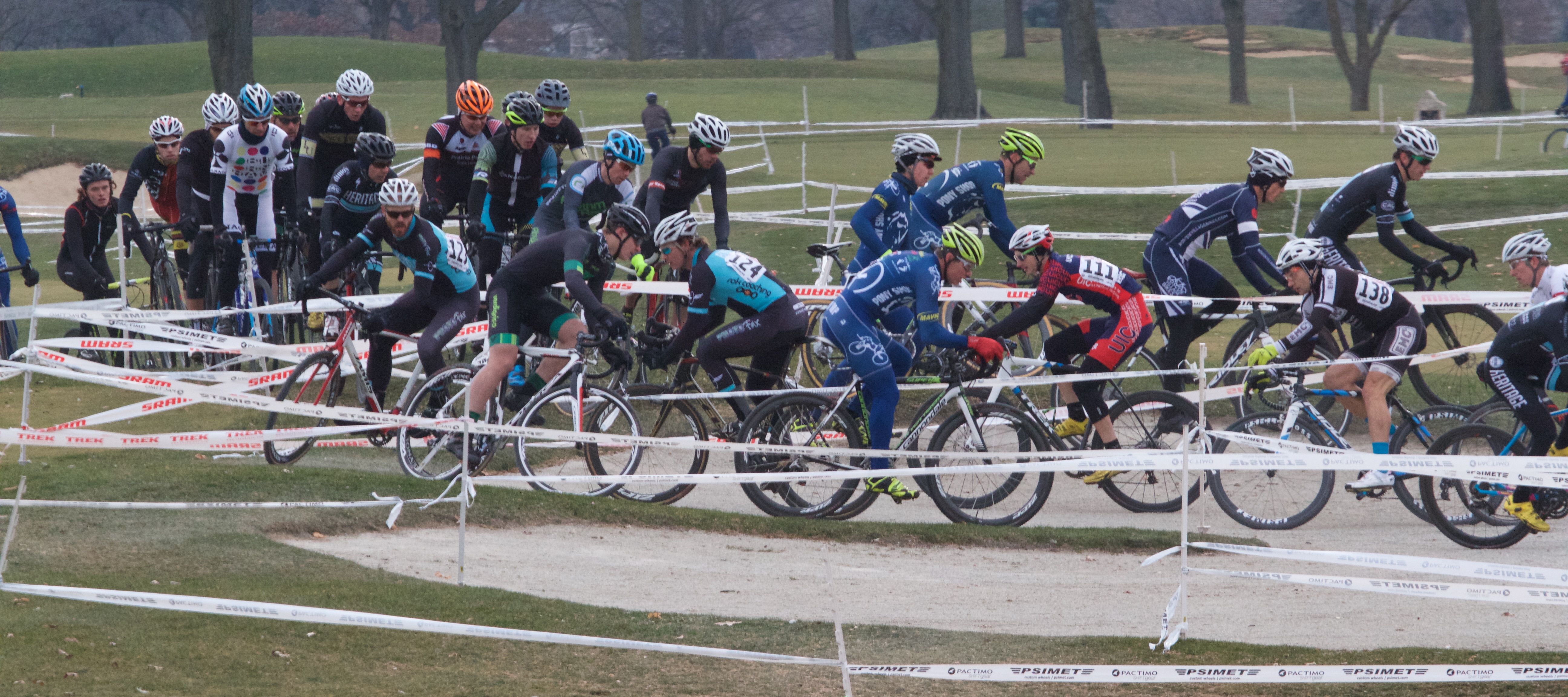 CaldwellLabagh Woods but the Single Speed category will start two minutes before the Jr 15-18. Slower single speeders, please make way for the fast juniors in a way that does not affect their race. - The course: similar figure-8 as in previous years but we get out to the tennis courts again. The course will run clockwise (except for the small loop around the flyover), same as the past couple years, but using some sections of the park we haven’t used in years. The course designers are going all UCI and having a paved start, so there will be no parking on the dead end road that goes back to the baseball diamonds. The flyover is back for it’s last race, at Hopkins Park anyway. So if you haven’t experienced the first, and now only, flyover in the CCC you won’t want to miss it this year. Equipment Pit access is shortly after coming down the flyover and again shortly after the finish line.